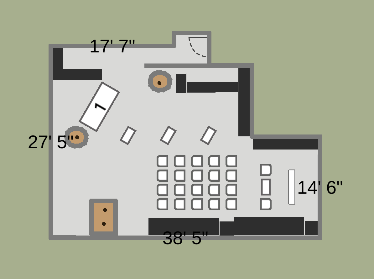Floor Plans SEATED DINNERS Seated Dinner: Up to 20 Guests Seated Dinner: Up to 28 Guests Seated Dinner: Up to 36 Guests Seated Dinner: Up to 40 Guests STANDING RECEPTIONS Standing Reception: up to 50 Guests Speaker Event: up to 50 guests